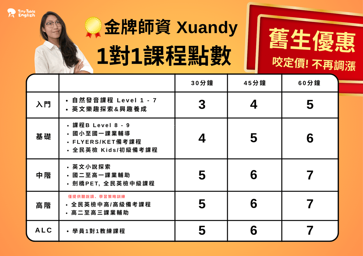 2026 年起,Xuandy 1對1 課程點數對外全面調漲。